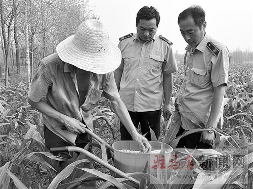 摘要: 7月20日,上蔡縣植保站的農技人員深入五龍鄉展莊寨村向村民李林華了解玉米追肥的情況。 記者 吳 波 通訊員 宋永亮 攝影報道
