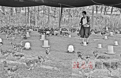 近日,驛城區香山街道辦事處農民薛根成在給雞喂玉米。隨著群眾生活水平的不斷提高,消費者對農村散養雞需求日益增加,農村飼養的散養雞深受消費者的青睞。驛城區香山街道辦事處積極引導農民利用田邊地頭發展散養雞,為群眾增收廣開門路。記者 郭連山 攝