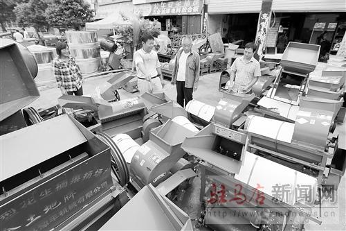 摘要: 9月10日,確山縣瓦崗鎮(zhèn)的農(nóng)民正在購買玉米脫粒機(jī)。 隨著秋收的臨近,由于小型玉米脫粒機(jī)、花生脫粒機(jī)既物美價廉,又大大節(jié)約了人力、提高了效率,受到了群眾的歡迎。記者 弓華靜 攝