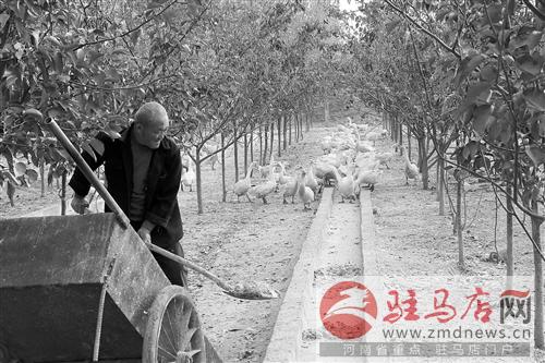 近年來,駐馬店經濟開發區關王廟鄉關王廟村村委會副主任范領積極發展林下經濟,以林養鵝,以鵝養林,不但降低了成本,而且提高了土地的綜合效益,收到了較好的生態效益。同時,他還帶動周邊群眾養鵝致富。記者 王朝朝 攝