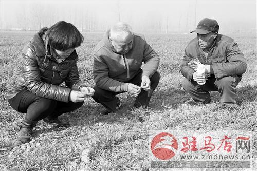 日前,驛城區植保站邀請市小麥專家到驛城區水屯鎮的田間地頭為農民冬季小麥管理支招,確保小麥安全越冬,為奪取明年小麥豐收奠定良好的基礎。記者 郭連山 楊曉暉 攝影報道