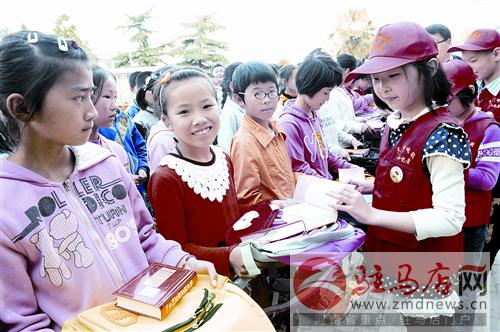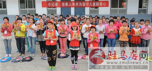 當(dāng)天下午,由天中晚報社小記者部發(fā)起的“關(guān)愛留守兒童,好書送希望”活動在這里舉行。天中晚報社領(lǐng)導(dǎo)和小記者們代表及信泰人壽保險股份有限公司駐馬店中心支公司相關(guān)負責(zé)人來到這里,為孩子們送來書包、書籍等。