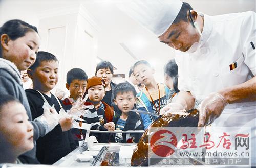 “叔叔,你做烤鴨多長時間了?”小記者問道。“10年了。”在觀看完大師傅片鴨的技術之后,小記者們又一次發出驚呼聲,還沒等烤鴨片好,一雙雙小手就伸到了盤子里搶美食。