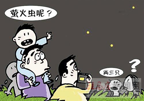 人類啊,為了自己的喜好欲望,擾亂了多少大自然生靈的夢境!許多地方天然的綠沒了、景沒了,便花巨資千里迢迢移栽,野生動物瀕臨滅絕了,又寶貝般圈養在園中。古人夜讀,可“聚螢做囊”,如今,連鄉下也難覓螢火蟲的蹤跡了……小小螢火蟲,莫非在與人們賭氣,才不肯為游人亮燈?