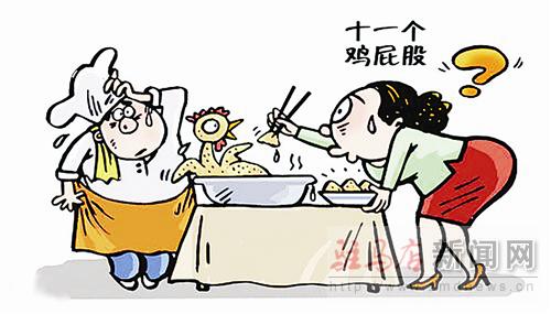 摘要: □小 強/文 春 鳴/圖 在餐館點了只活雞,菜端上桌子,竟然吃出了11個雞屁股。這種稀奇事讓陽女士碰到了,她既生氣又覺得好笑。餐館解釋是鄰桌點的,廚師搞錯了。詢問鄰桌“是不是多要了雞屁股&rdqu