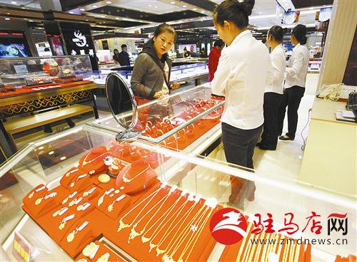 11月27日,顧客正在市區某商場黃金專柜前瀏覽黃金飾品。受美國勞工部發布就業數據和市場量化寬松預期減弱的壓力,紐約商品交易所黃金期貨合約價格11月21日繼續下挫,收盤價創今年7月初以來新低,國內黃金飾品店千足金價格略有下降。 記者 吳 波 攝