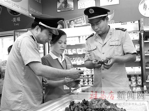 端午節(jié)臨近,為讓消費(fèi)者吃上放心粽子,近日,西平縣工商局加大市場(chǎng)檢查力度,確保消費(fèi)安全。圖為該局執(zhí)法人員在一超市對(duì)照食品臺(tái)賬核對(duì)粽子進(jìn)貨渠道。記者 張 勇 通訊員 王向前 攝影報(bào)道