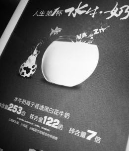 在上海的樓宇宣傳廣告中,皇氏乳業稱摩拉菲爾“水牛奶高于普通黑白花牛奶,維生素A含量253倍,鐵含量122倍,鋅含量7倍”。上述廣告中稱,這些數據源于《中國水牛科學》、《液態奶》、《乳品制造學》。