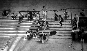 摘要: 8月4日晚9時,西站北廣場馬路對面中裕大廈后的巷子內,旅客交完錢后坐在臺階上等車。 當晚9時30分,“黑長途車”駛入巷子內,“售票點”人員(圖片最下方)招呼乘客上車。 每天