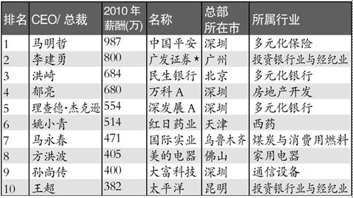 《福布斯》中文版昨發(fā)布2011年中國上市公司CEO薪酬榜單