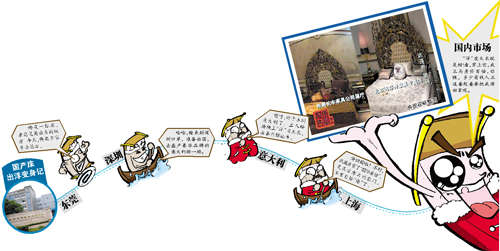 東莞長豐家具公司生產的家具交付達芬奇公司之后,達芬奇公司將這些家具從深圳口岸出港,運往意大利,再從意大利運回上海,從上海報關回到國內,這些家具就有了全套進口手續,成為“100%意大利原裝家具”。