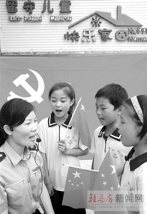 在中國共產黨成立90周年之際,新蔡縣工商局“代理媽媽”來到新蔡縣凱旋雙語實驗學校開展“唱紅歌 頌黨恩”活動,教留守兒童學唱紅歌《沒有共產黨就沒有新中國》。通訊員 趙學風 蔡海燕 攝影報道
