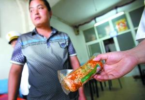 前日,記者曾發現一廚師在仲某攤位購買過期食品并帶回快餐店。昨日下午3時,衛生監督所執法人員來到該快餐店。執法人員詢問男店主有無火腿腸銷售,男店主堅稱沒有。