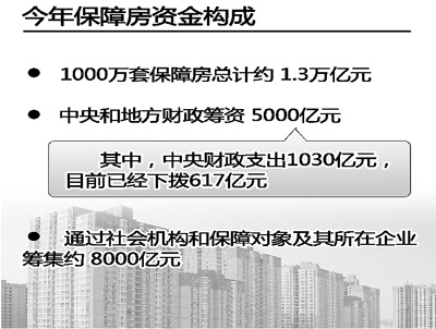 其中,中央財(cái)政投入保障性安居工程的專項(xiàng)補(bǔ)助資金將超過(guò)1000億元,支持力度進(jìn)一步加大。即便如此,仍有約90%的資金需要地方政府解決。