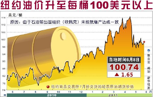 圖表:紐約油價升至每桶100美元以上 新華社發