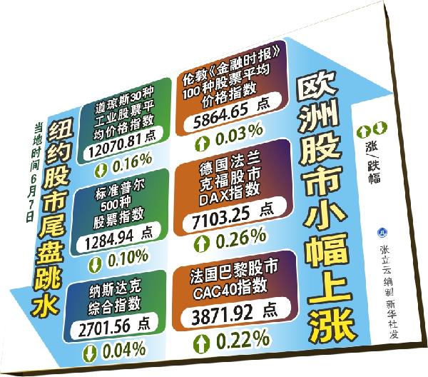 圖表:歐洲股市小幅上漲 紐約股市尾盤跳水 新華社發