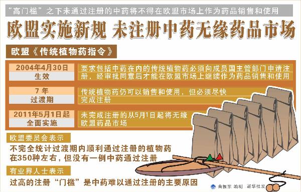 新華社圖表,北京,2011年5月1日 圖表:歐盟實施新規 未注冊中藥無緣藥品市場 新華社發