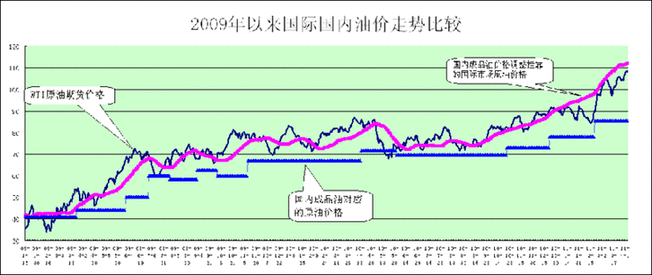 附:2009年以來國際國內(nèi)油價走勢比較