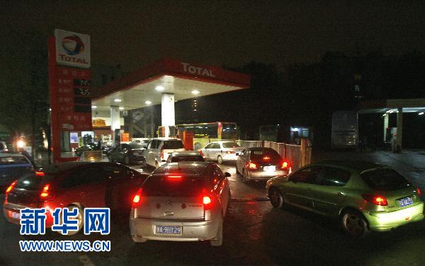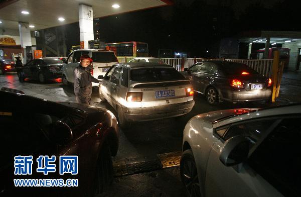 4月6日晚,武漢漢口的一個加油站擠滿前來加油的車輛。新華社發(fā)