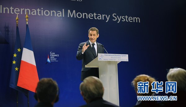 3月31日,法國總統薩科齊在國際貨幣體系改革研討會開幕式上講話。當日,國際貨幣體系改革研討會在南京舉行。國際貨幣體系改革研討會由法方主辦,中國國際經濟交流中心提供會務服務,是一個非正式和學術性的研討會,主要討論國際貨幣體系改革問題。新華社記者吳曉凌攝