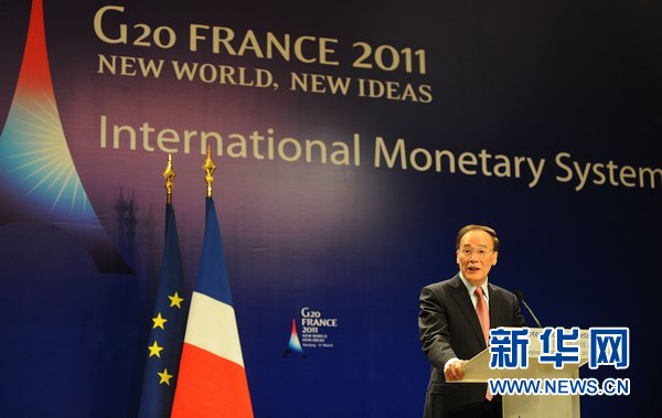 3月31日,中國國務院副總理王岐山在國際貨幣體系改革研討會開幕式上講話。當日,國際貨幣體系改革研討會在南京舉行。國際貨幣體系改革研討會由法方主辦,中國國際經濟交流中心提供會務服務,是一個非正式和學術性的研討會,主要討論國際貨幣體系改革問題。新華社記者吳曉凌攝