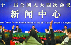 昨天,十一屆全國人大四次會議在兩會新聞中心舉行記者會。衛生部部長陳竺,財政部副部長王軍,人力資源和社會保障部副部長胡曉義,發改委副主任、國務院醫改辦公室主任孫志剛就深化醫藥衛生體制改革的相關問題回答中外記者提問?! ”緢笥浾?戴冰攝