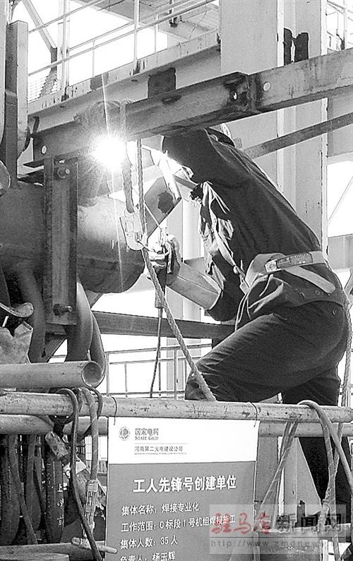 近日,國電駐馬店熱電廠2×330MW機組擴建工程建設已進入最后攻堅階段,為加快進度,建設單位開展了“爭創工人先鋒號”勞動競賽活動。圖為工作人員在