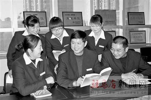 摘要: 被總行授予“文明建設先進單位”的農行駐馬店分行營業室積極開展廉政教育活動,利用廉政教育講座、知識競賽、座談會等形式組織員工學習。圖為12月17日員工們在交流學習體會。 通訊員 鄧國勇 攝