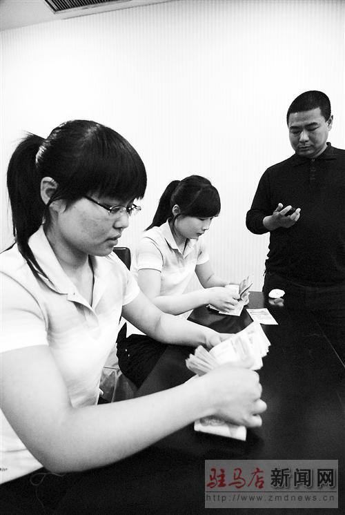 各縣區參賽隊員在進行人民幣真偽鑒別測試比賽。