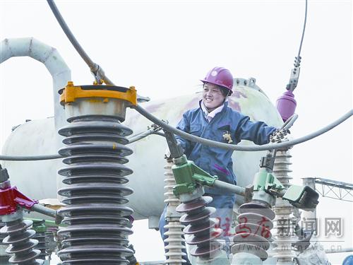 泌陽縣電業公司修試公司是一個以女工為主的一線單位,她們工作嚴謹、淡泊名利、無私奉獻的時代精神感染著該公司每一位電業人。圖為修試班長禹迎春近日在110KV變壓器上工作。通訊員 呂紹戰 攝