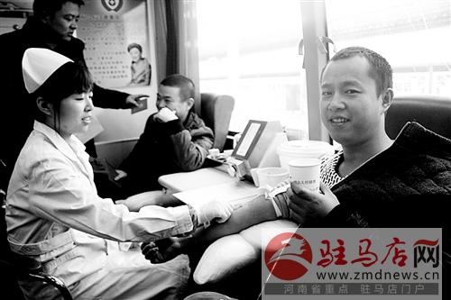 12月4日,驛城區新華街道外的一輛獻血車上,擠滿了等待獻血的人。