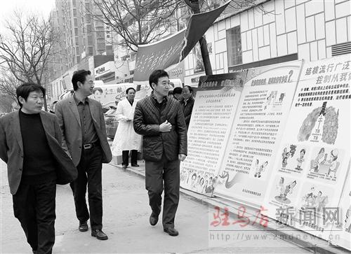 市衛(wèi)生局相關(guān)負(fù)責(zé)同志在街頭察看宣傳情況。