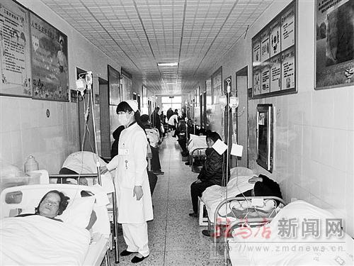 隨后,記者在市中心醫院神經外科等病房也看到走廊加滿病床的情況。市中醫院也是這樣,“醫院總共開放床位800多張,現在住院病人已接近千人。”市中醫院一位工作人員說。