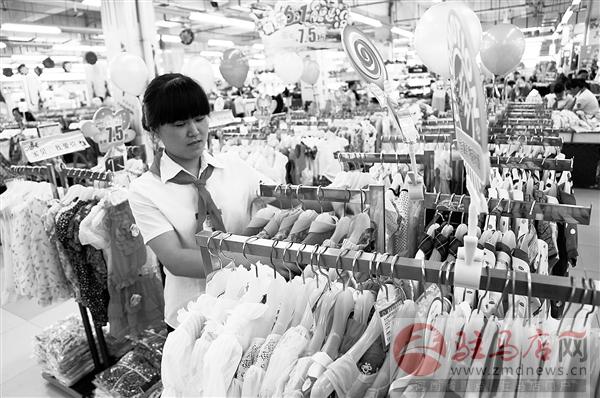 六一國際兒童節將至,市區各大超市一片繁忙景象,銷售人員也戴上了紅領巾,展示親和力,她們忙著把花色鮮艷、樣式新穎的服裝整理上架。據商家介紹,這些商品均優惠出售,讓孩子們打扮得花枝招展快樂過節日。記者 張 朝 攝