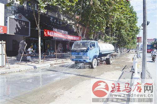 摘要: 近日,市區樂山大道排水工程部分路段已經修整完畢,開始清理路面。圖為灑水車正在沖洗部分已修整好的路面。記者 彭 程 攝