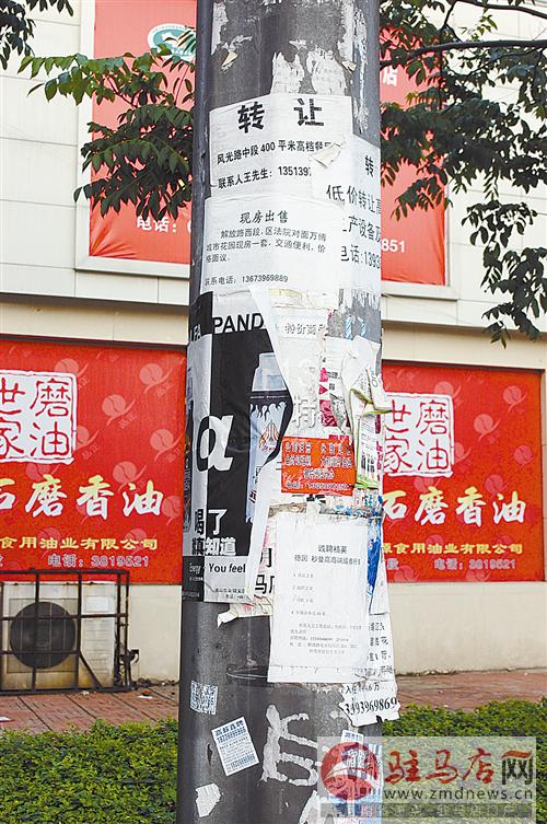 摘要: 近日,記者在市區中華大道中段一電線桿上看到,各種小廣告把電線桿貼得滿滿的,有的小廣告內容不堪入目。隨后,記者來到市區解放大道、樂山大道、交通路等路段也看到很多這樣的小廣告,嚴重影響城市形