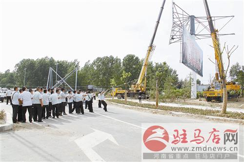 開源大道是我市重要的景觀大道,為確保過往行人安全,提升城市形象,該支隊冒著高溫,組織100多名執(zhí)法人員,20多輛執(zhí)法車,兩臺大型吊機(jī)連續(xù)工作20多個小時。據(jù)市城建監(jiān)察支隊相關(guān)人員介紹,該廣告塔沒有規(guī)劃等手續(xù),存在諸多安全隱患。記者 馬國省 攝