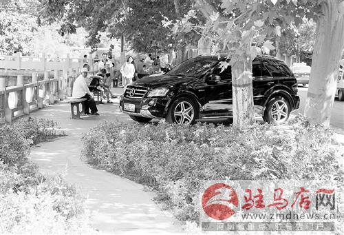 摘要: 7月11日,記者在市區(qū)街道走訪發(fā)現(xiàn),許多車輛停在人行道上,占壓盲道,有的停在十字路口中央;非機動車道上隨意劃定停車帶,車輛亂停亂放現(xiàn)象仍比較突出。記者 張 朝 攝 駿馬路中段,這輛轎車停在綠化帶