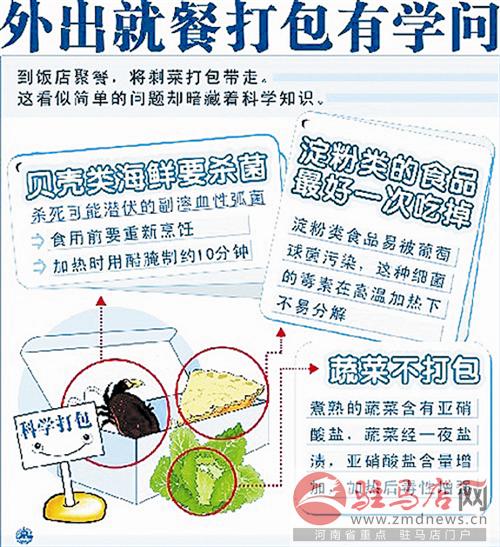 在采訪中記者發現,如今,外出就餐后將剩菜打包已在一定程度上受到市民的認同,但是并不是所有的飯菜都可以打包,即使可以打包的食物,再次食用時也應注意食用方法。例如剩魚一定要充分加熱后食用,吃剩的蔬菜最好不要打包。富含淀粉類食品最好在4小時內吃完。此外,剩飯的保存時間以不隔餐為宜,盡量在5~6小時內吃完。此外,熟制食品放進冰箱前,應涼透。食用冰箱中放置的熟制食品前,也需回鍋燒熟煮透后方能食用。