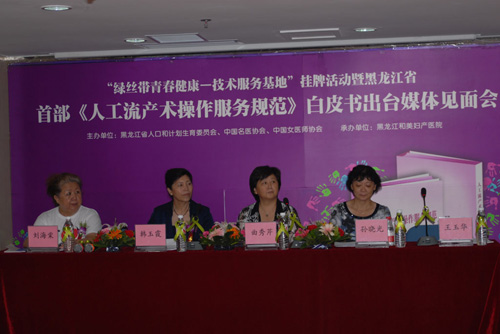 近日,首部《人工流產手術操作服務規范》白皮書出臺暨“綠絲帶青春健康--技術服務基地”掛牌儀式活動在黑龍江和美婦產醫院舉行,黑龍江省人口計生委副主任曲秀琴、黑龍江省女醫師協會會長韓玉霞、北京協會醫院婦產科專家孫曉光、和美婦產醫院院長王玉華等出席活動并致辭。