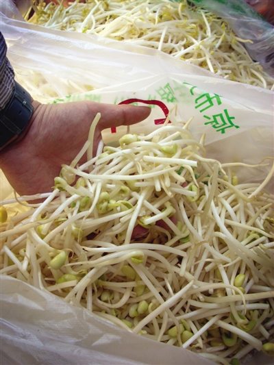 國家規(guī)定,“連二亞硫酸鈉”并不能用于豆芽這類新鮮蔬菜的漂白。本報(bào)記者 王遠(yuǎn)征 攝