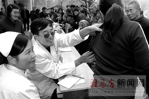 日前,確山縣人民醫院加大對基層衛生院的幫扶力度,有針對性地對基層衛生院進行幫扶,并開展大型義診活動,為村民提供良好的醫療服務。圖為該院醫生為任店鎮猴廟村村民進行義診。 記者 胡旭渝 通訊員 曹天順 攝影報道