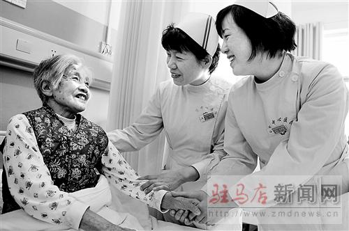 “護理人員一個親切的微笑,一句貼心的問候,讓俺這些處在疾病痛苦中的患者感受到家一樣的溫暖。”來自新蔡縣古呂街道辦事處的范大娘高興地對記者說。近年來,作為我市醫療行業龍頭單位的市中心醫院,在加大投入、更新先進醫療設備的同時,更注重提高醫院的服務水平,以貼心、細致、人性化的服務,贏得了我市廣大人民群眾的普遍好評。圖為該院普外一科護理人員在與患者親切交流。 記者 王 偉 攝