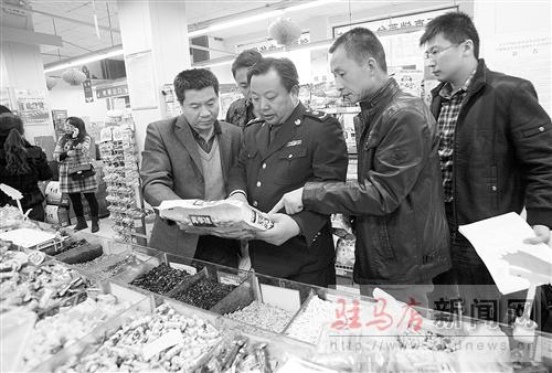 日前,開發區抽調相關部門人員組成食品安全督察組,隨機抽查轄區內超市、學校食堂等食品安全,對在抽查中發現的問題及時反饋并跟蹤整改效果。圖為該區食品安全抽查人員正在抽查超市的食品。記者 唐