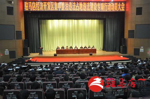 大會宣讀了開發區《關于成立集中整治違法占地違法建設專項行動指揮部的通知》、《開發區集中整治違法占地違法建設專項行動實施方案的通知》、《關于對嚴重違法占地違法建設單位和個人采取限制措施的意見的通知》等文件。