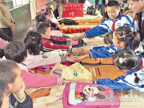 當天,市第二十一小學向確山瓦崗中心小學贈送了嶄新的圖書。活動中,兩所學校的10名同學還結成幫扶對子,并互贈了禮物。