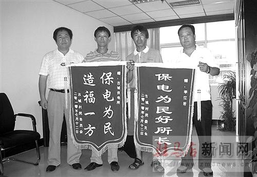 確山縣古城村委為該縣電業局送來錦旗