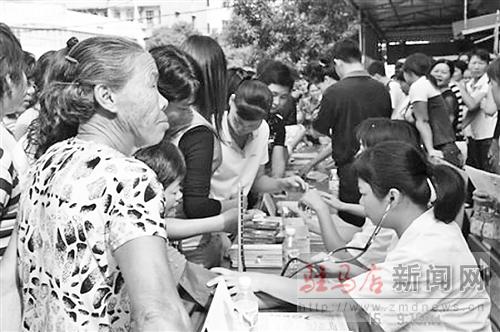 確山縣劉店鎮計生協會與鎮衛生院人員為農村育齡群眾檢查身體