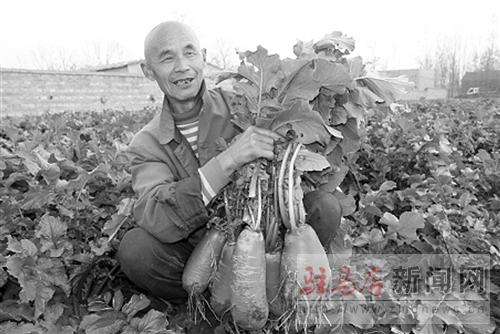確山縣普會寺鄉錢溝村大李莊村民組因其特有的土質,村民們種植的大紅袍蘿卜不僅個頭兒大,而且脆甜、水分大。60多歲的村民錢格義說,他記事起他的爺爺就種這種大紅袍蘿卜,已經延續了幾十年,當地流傳著“蘿卜上了街、藥鋪不開業”,“冬吃蘿卜夏吃瓜、閨女嫁給大李莊”的順口溜。目前,他們正積極為這種蘿卜申請注冊商標。 記者 張新義 通訊員 段陽東 攝影報道