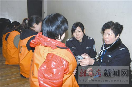 在三八婦女節(jié)來臨之際,為了確保全體女在押人員的身心健康,正陽縣公安局看守所組織醫(yī)務人員對她們進行了一次免費體檢。圖為醫(yī)務人員人員正在細心地給女在押人員量血壓。   記者 楊軍民 通訊員 張耀中 攝影報道